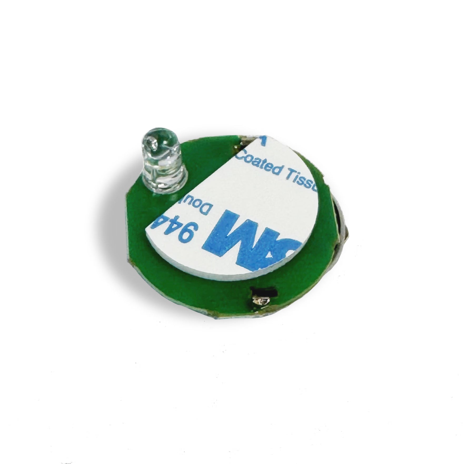 Flashing White 5mm LED Button Flasher. Up to 12 weeks battery life. 3M adhesive pad for application.